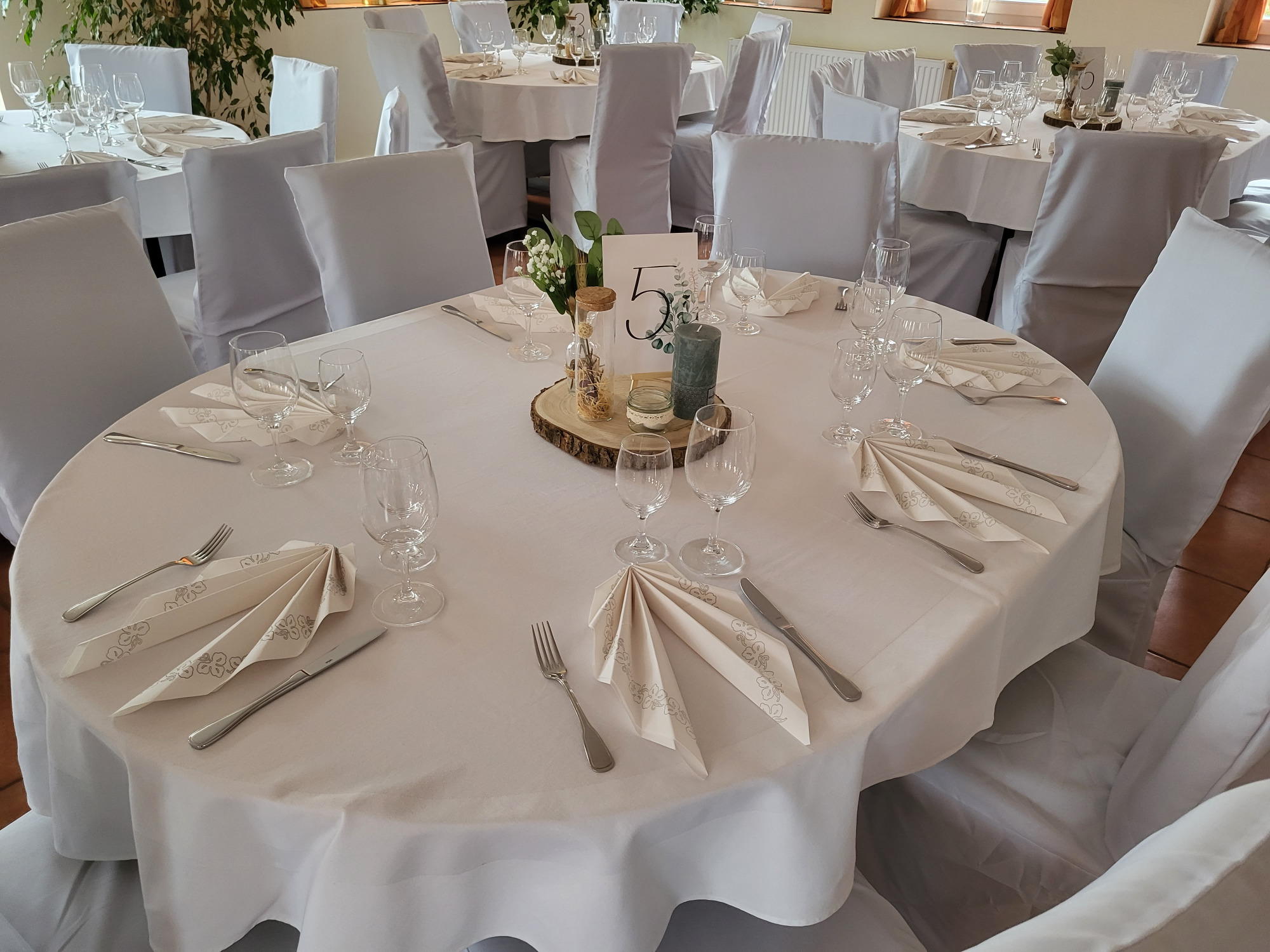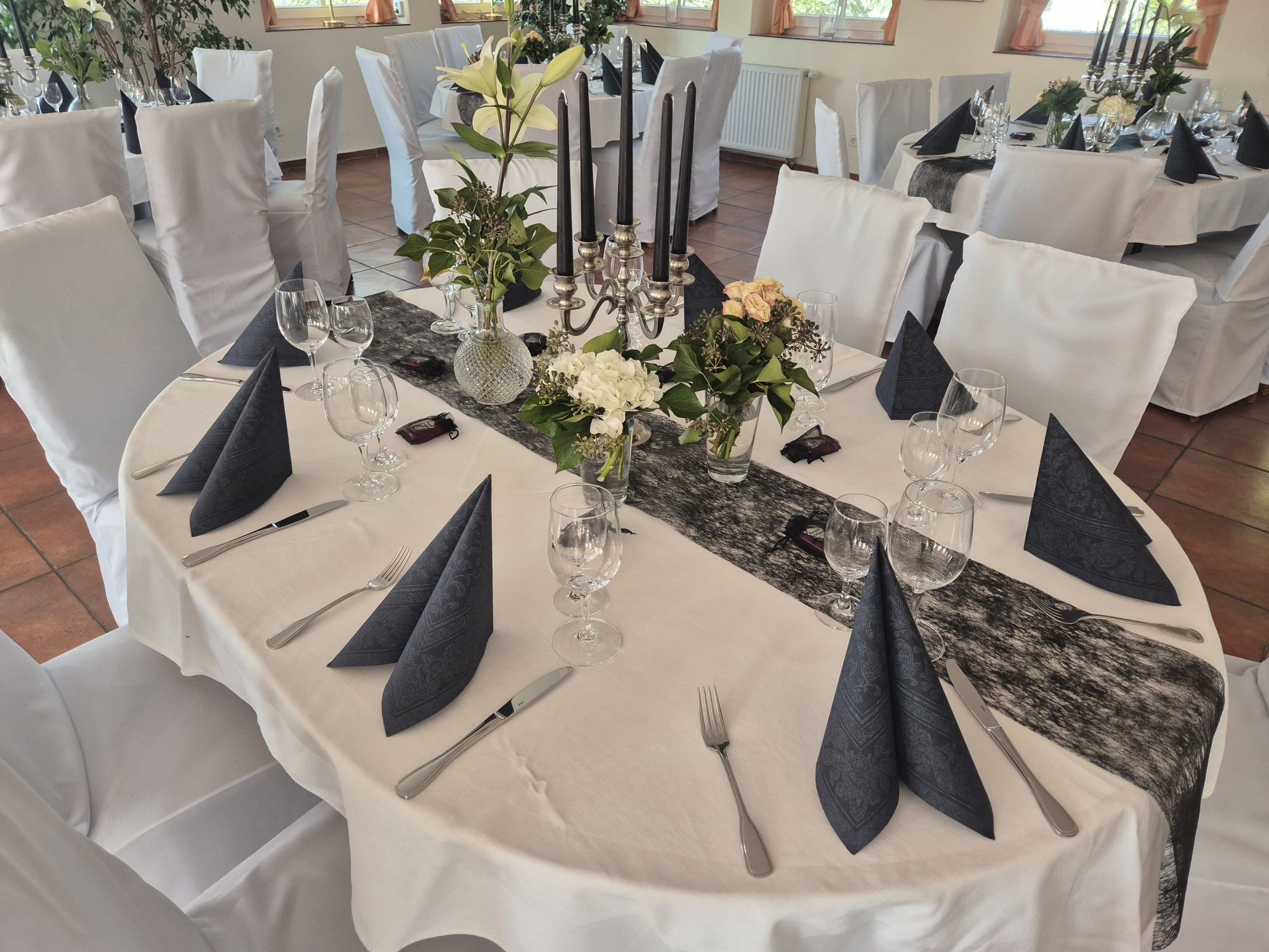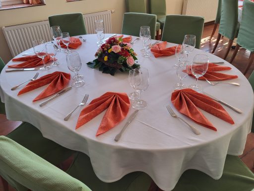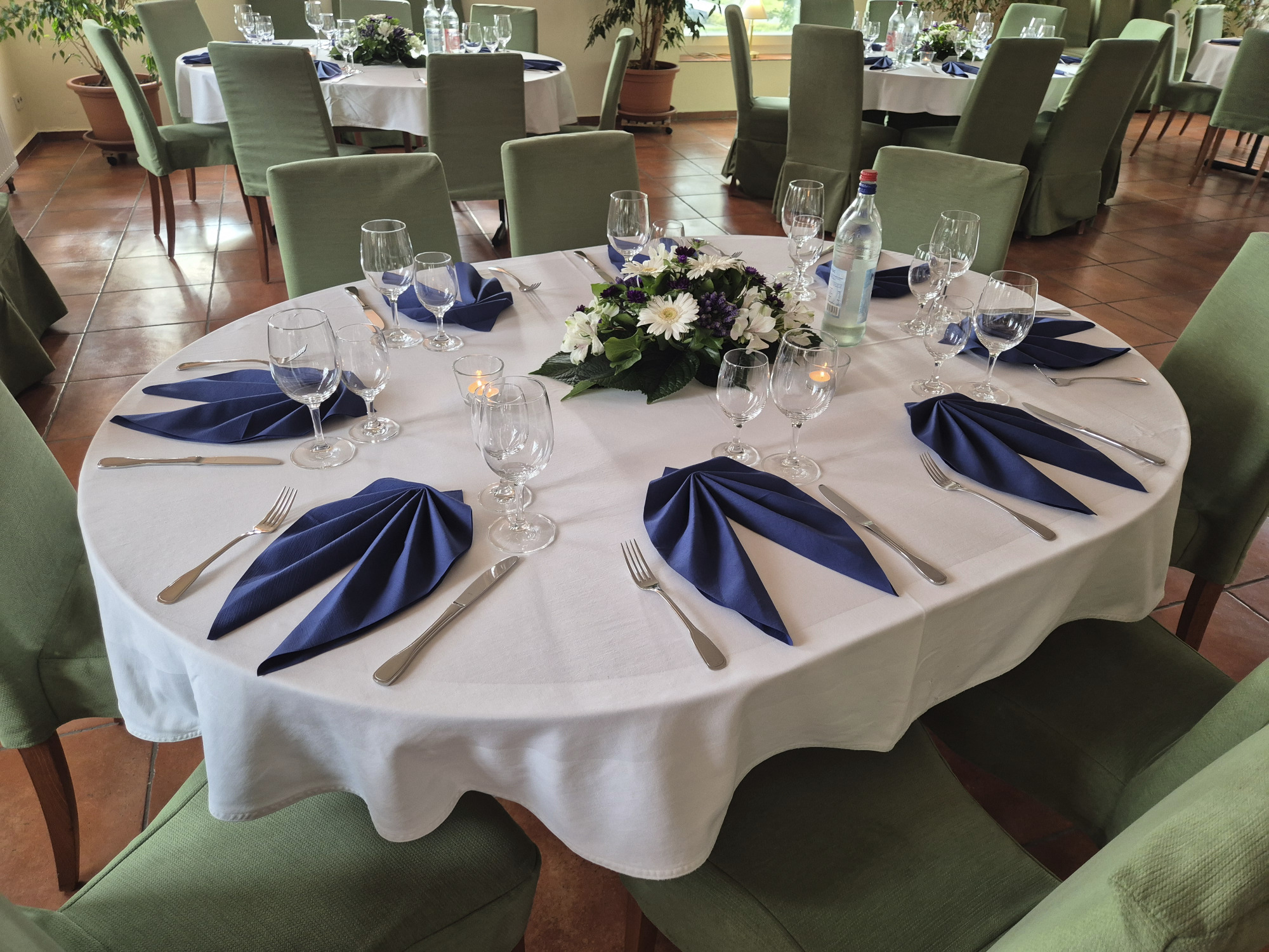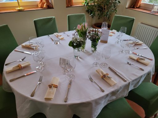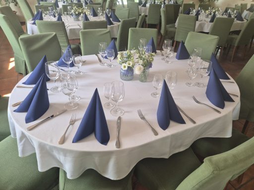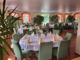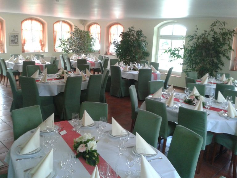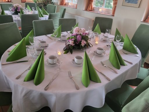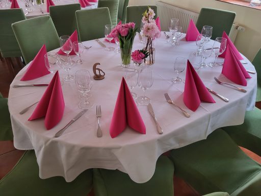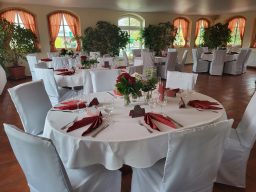 Hier finden Ihre Gäste an festlich dekorierten Tischen Platz. Farben und Gestaltung stimmen wir gerne individuell auf Ihre Wünsche ab. Auch besondere Ideen sind willkommen.